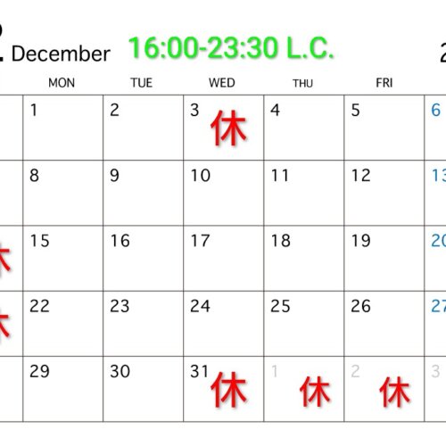 【12月のお休み】